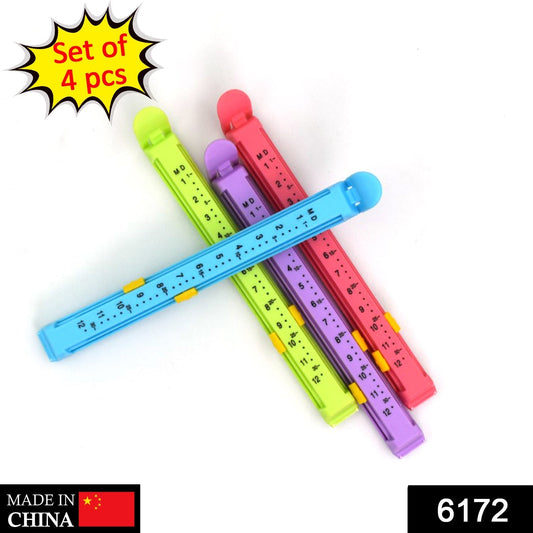 large Plastic Food Pouch Clip Sealer for Keeping Food Fresh for Home Kitchen Camping, Set of 4 (Multicolor)