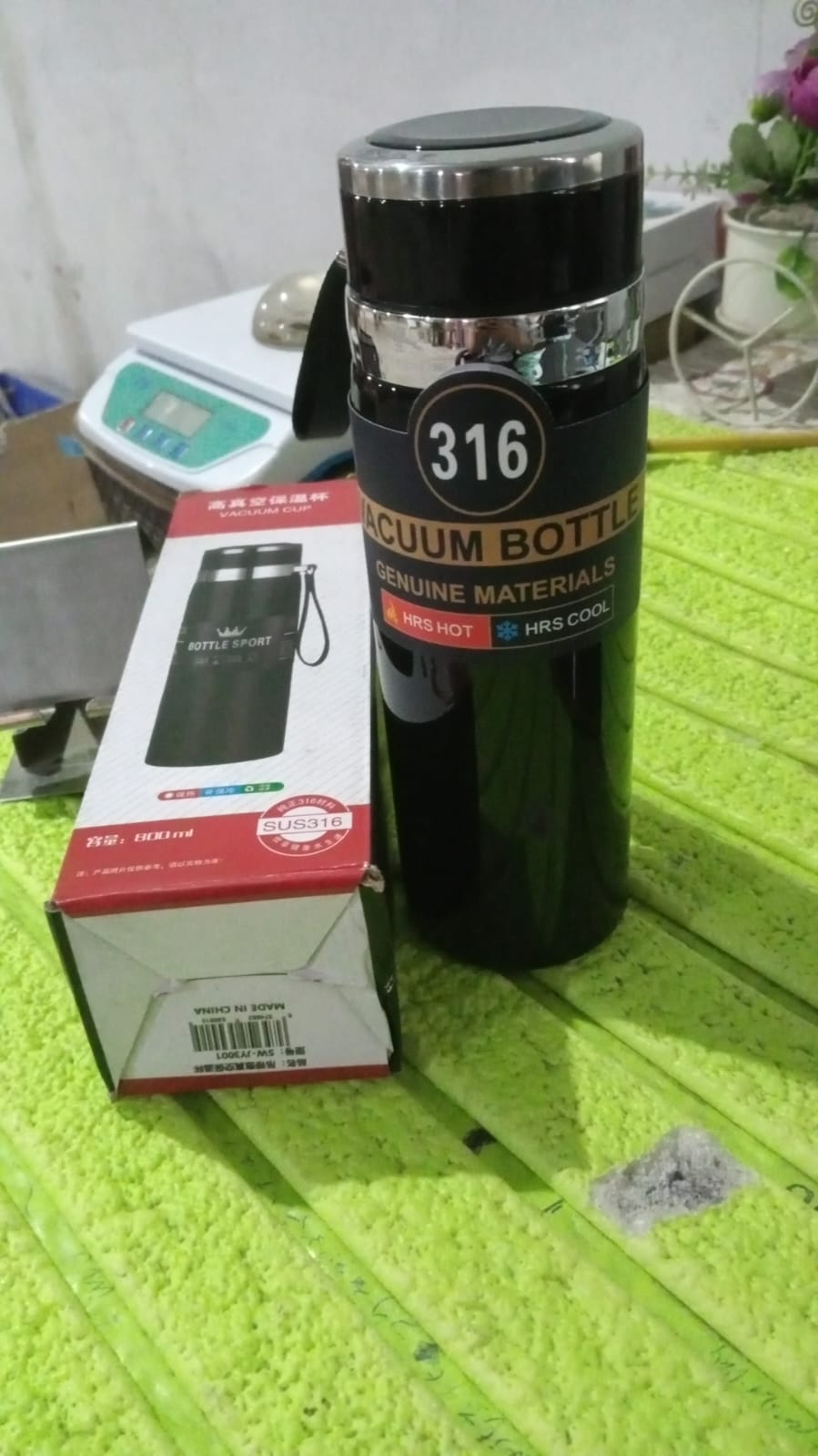 • Stainless-steel Thermos water bottle ; ideal for home, school, the office, or on the go.