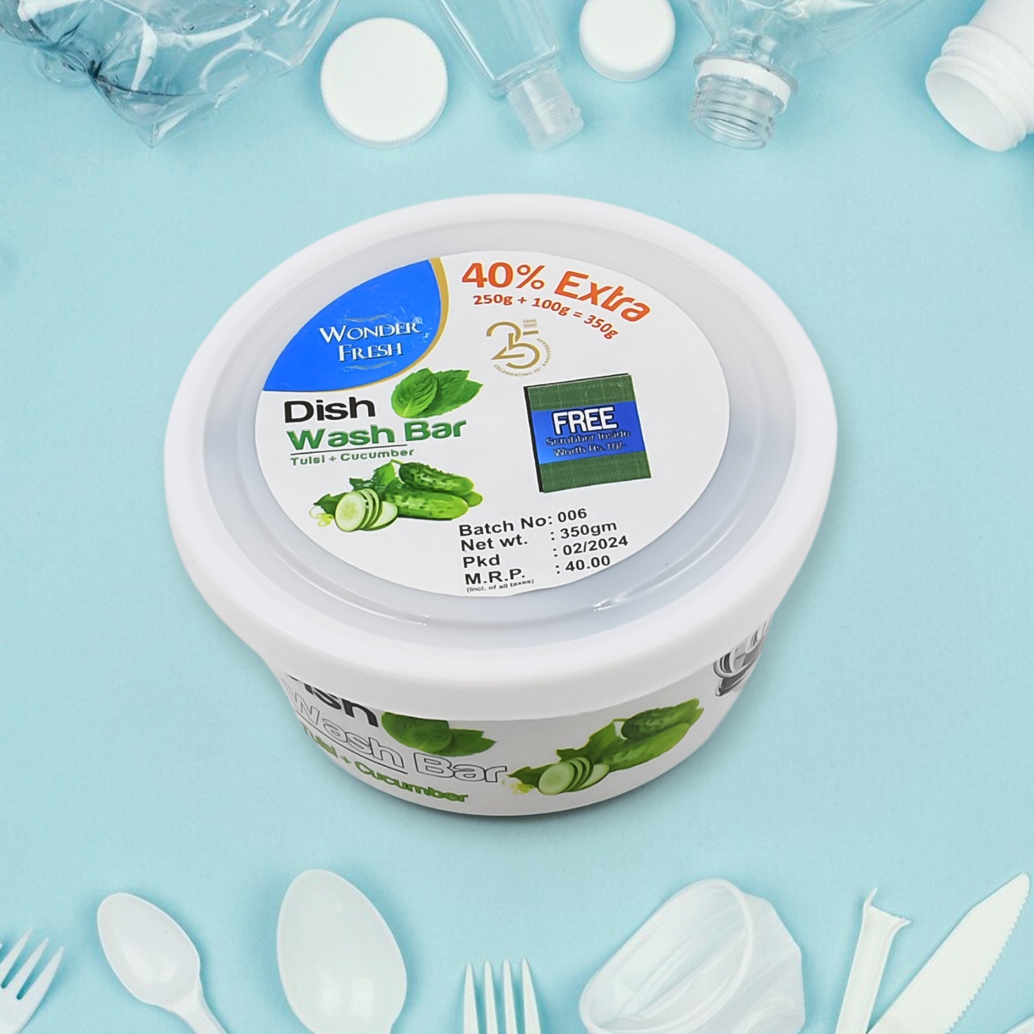 Fresh Mix Flavor Round Dishwash Bar With Super Scrubber Free Complete Dishwashing Solution, Tough Stains Remover (350 Gm)