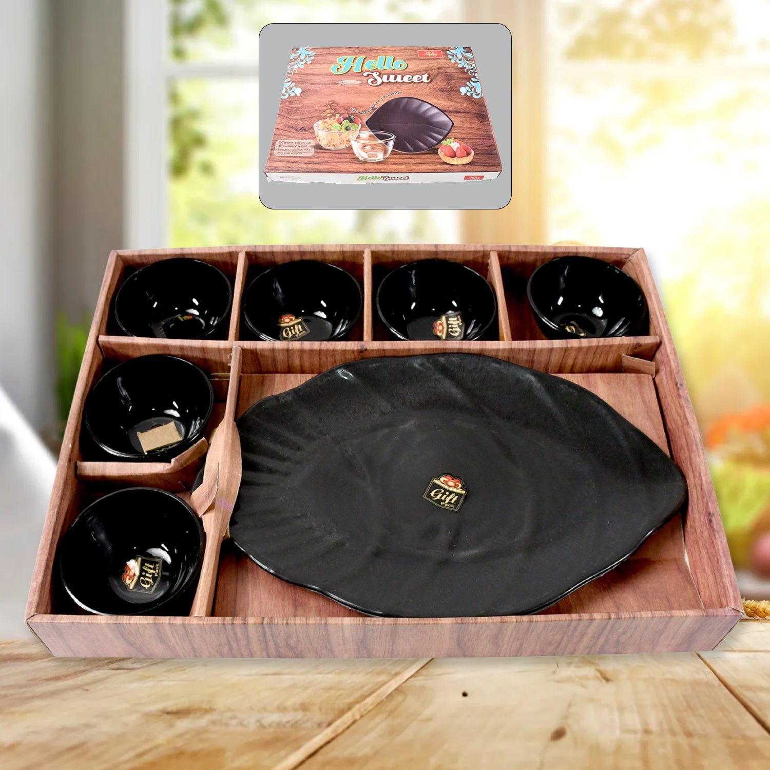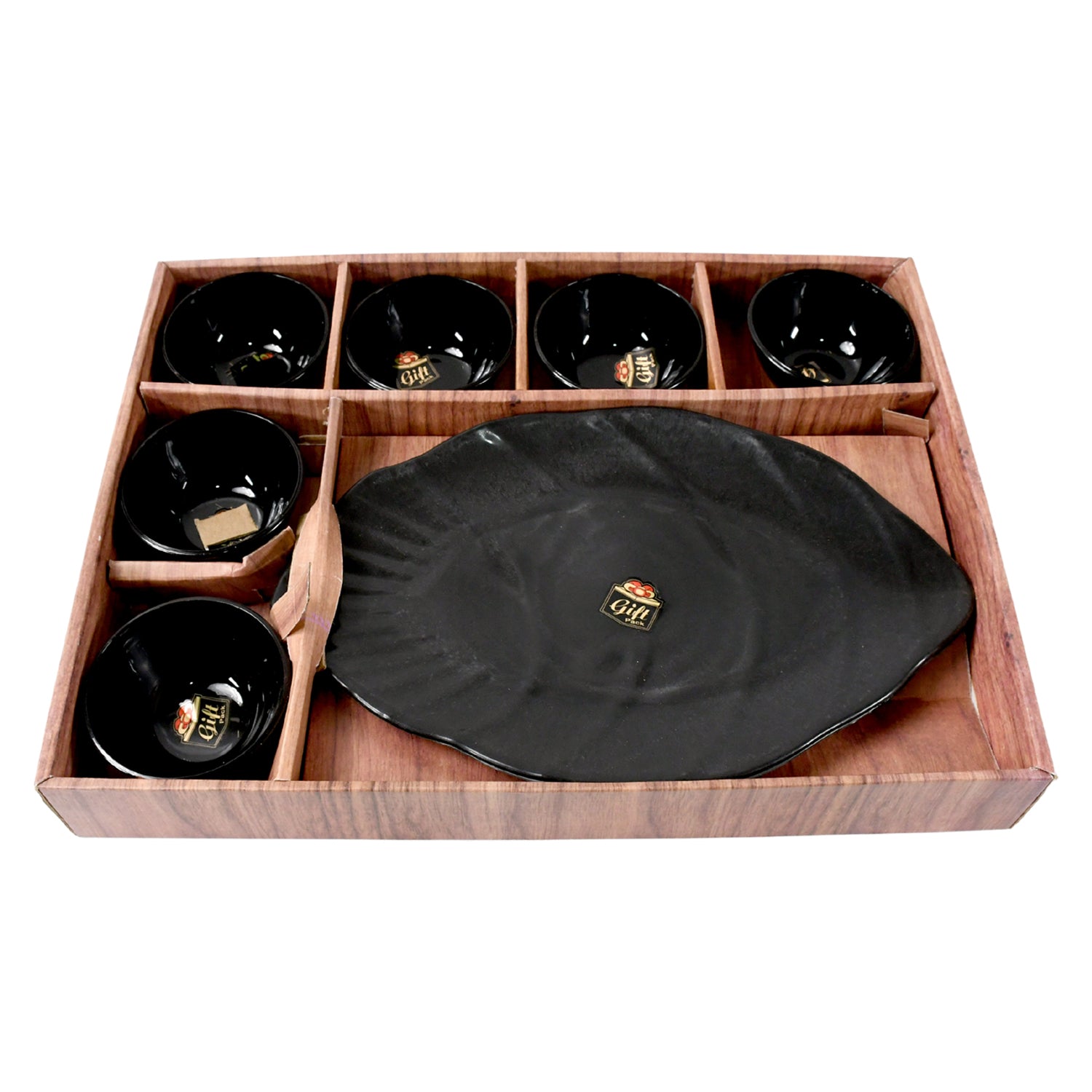 6 pcs bowl & 1 pc serving Platter Made From High-quality Ceramic Material Bowl & high quality plastic platter.