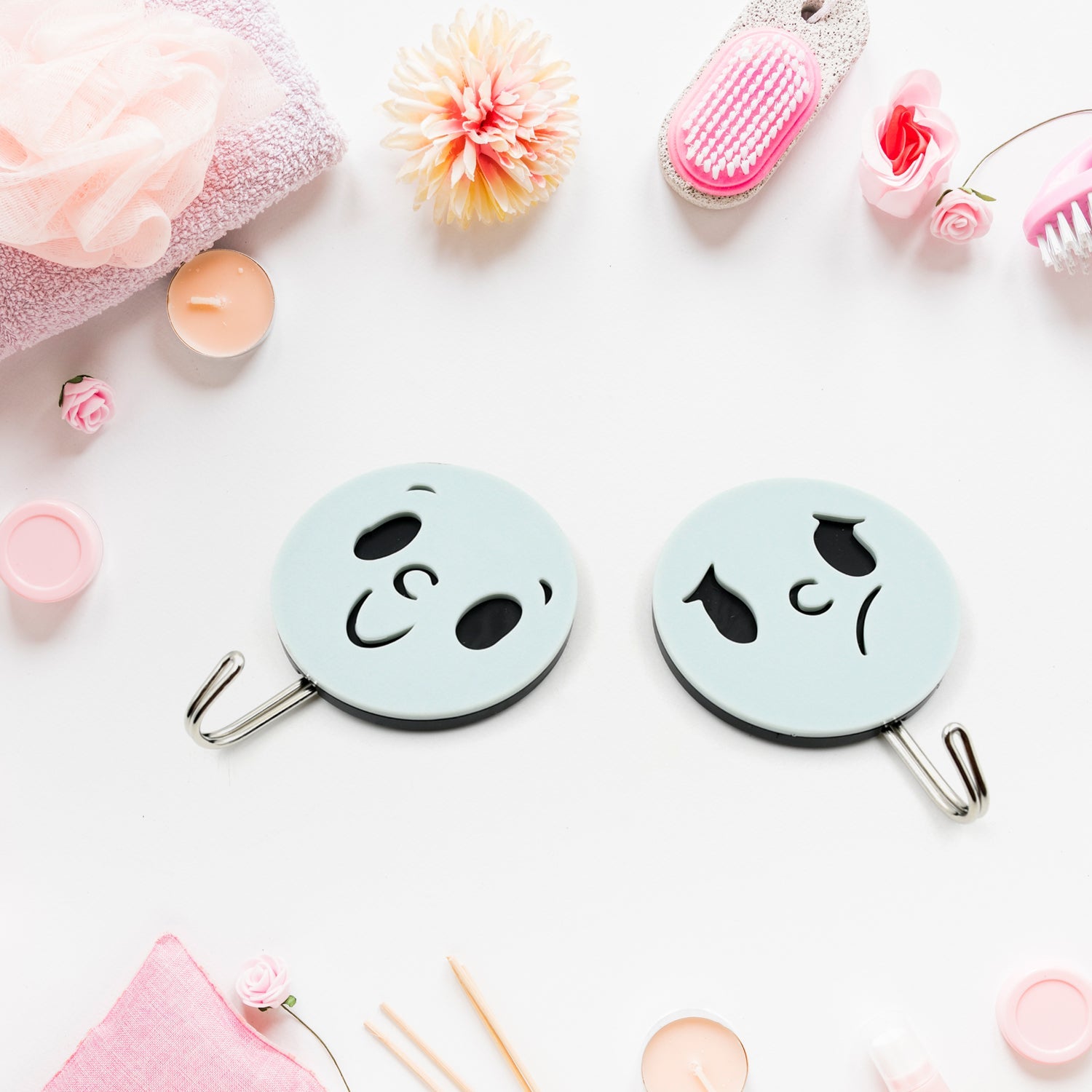 • The hooks are very easy to install. Clean the work surface, peel off the protective film, stick and press firmly to drain the air.