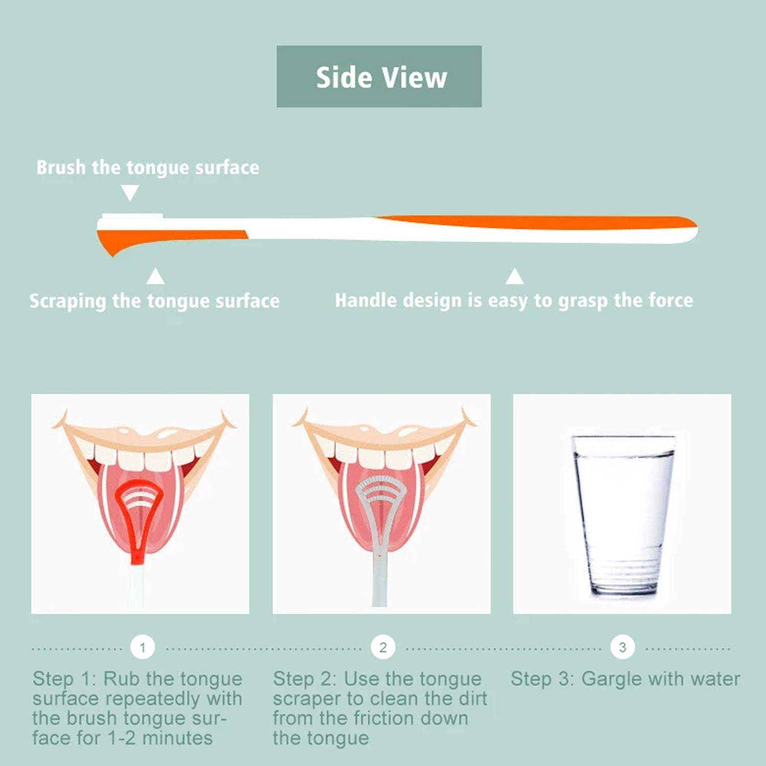 • ANTI-SLIP DESIGN: The handle part of this product adopts anti-slip design, which increases the grip and stability and avoids the tongue scraper from slipping or hurting the mouth during use.